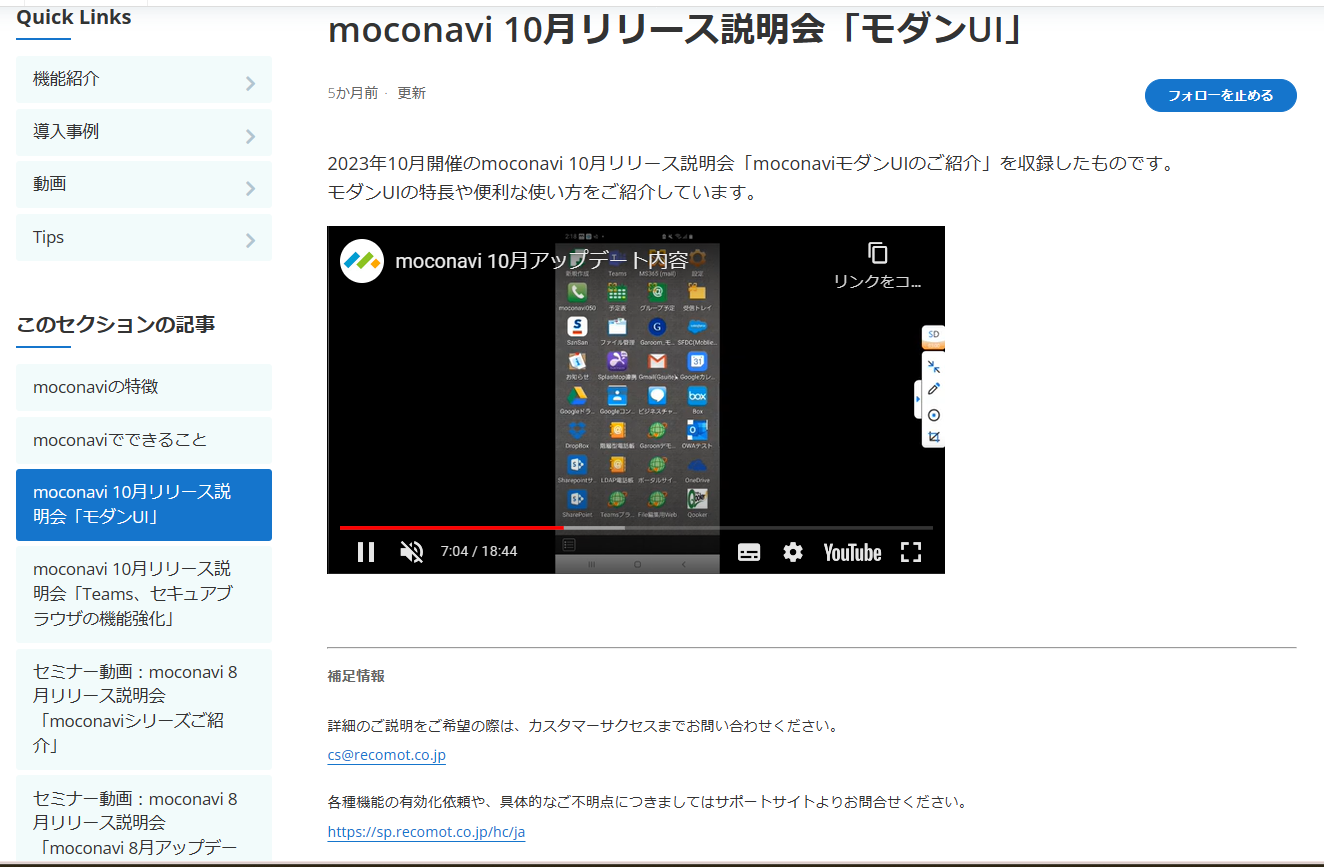 mocomotサイトには管理者様むけセミナー動画のほか、「moconaviの特徴」や「 moconaviでできること」などサービス概要やmoconaviの独自サービスの機能紹介など様々な動画をご用意しております。